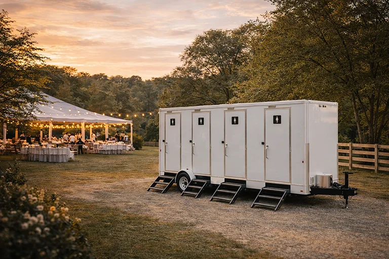 Clean, climate-controlled restroom trailers for weddings, events, and job sites across East Texas.